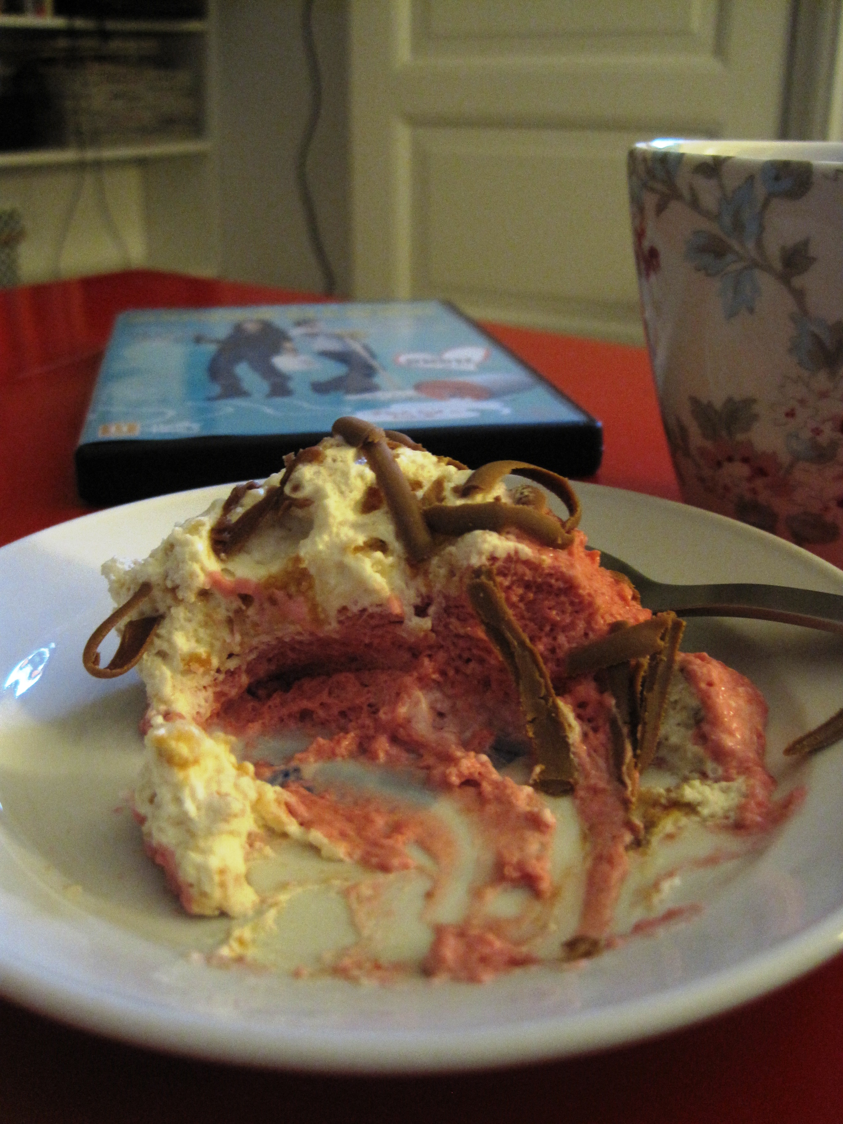 Det gør billede af hindbærfromage med makronflødeskum og revet nougat så til gengæld ikke. Sorry.