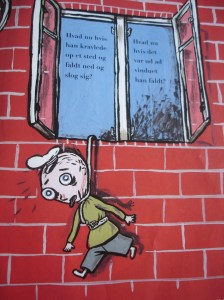 Tegningen er i øvrigt en næsten tro kopi af, hvordan det så ud sidste forår, da miss Carla faldt ud af vinduet fra første sal.