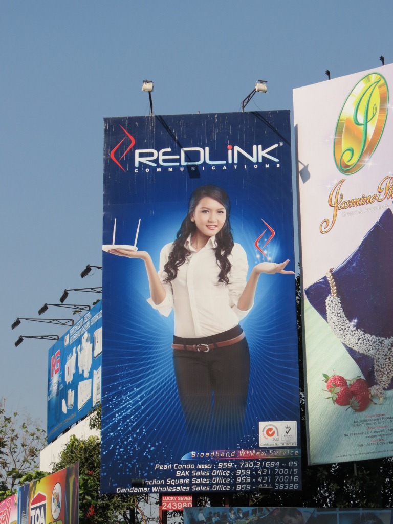 Velkommen til Yangon i reklamer. Det er, skal vi sige, en smule ensporet, men hey det er der jo så meget i reklameverdenen, der er. Og om ikke andet må man komplimentere dem for at gå linen ud.