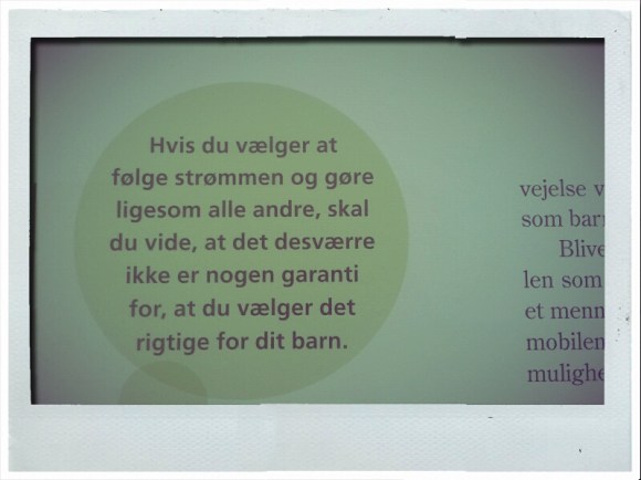 Men ved du, hvad vi skal? Vi skal slappe af med det arbejde. Vi skal passe vores arbejde, bevares, men vi skal holde op med TALE om det hele tiden. For ærlig talt, jeg gider ikke høre, hvor vigtig du er på dit arbejde – jeg vil meget hellere høre, hvad du mener om noget, der vedrører os alle sammen, samfundet, fællesskabet. Jeg vil meget hellere se dine drømme folde sig ud – også selvom det ikke sker over en nat, men over et liv.
