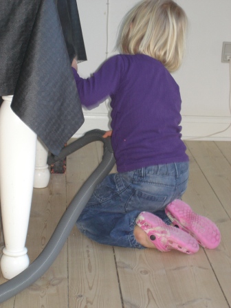 Fordelen lige nu er, at man kan få børnene til at hjælpe (med noget der rent faktisk er en hjælp) uden modydelser – bare fordi det er hyggeligt at være sammen, eller fordi det på mærkværdigvis er lykkes at gøre fx støvsugeren så attraktiv, så det i sig selv er en belønning at røre ved den. Ligesom det at blive sendt i kælderen efter toiletpapir er at sammenligne med en tur i tivoli…