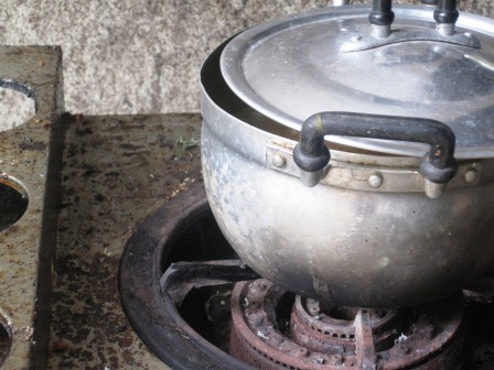 Så stillede han en sautepande pyntet med en grøn papirserviet på bordet og sagde, at nu var vi velkommen til at give en donation for middagen, hvis vi havde lyst. Vi havde ikke så meget lyst til at betale mere end det beløb, vi allerede havde betalt, da vi bestilte bord, og det blev han faktisk så skuffet over, så han bad om at få en snak med min veninde om vores manglende gavmildhed.
